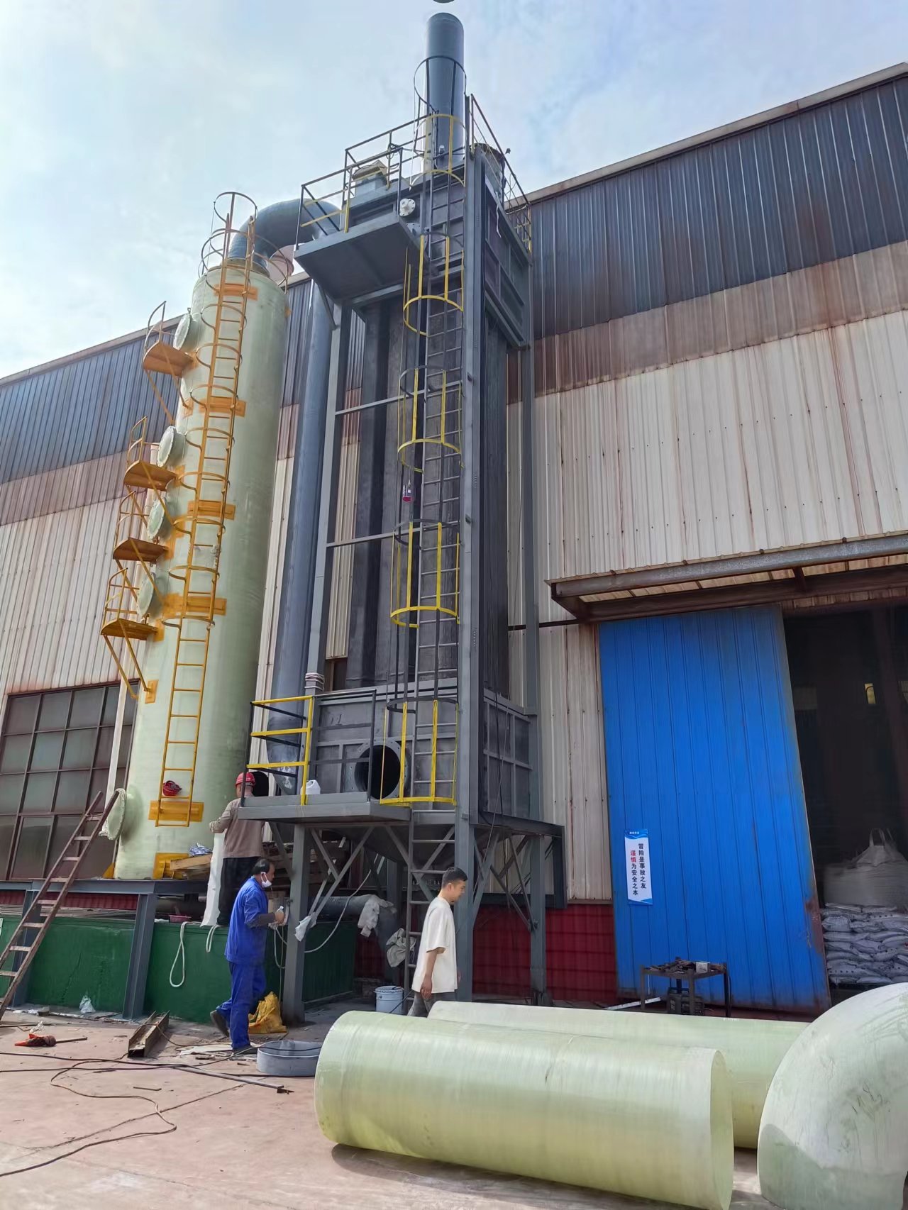 玻璃鋼噴淋塔加濕式靜電吸附,處理煙氣,水霧